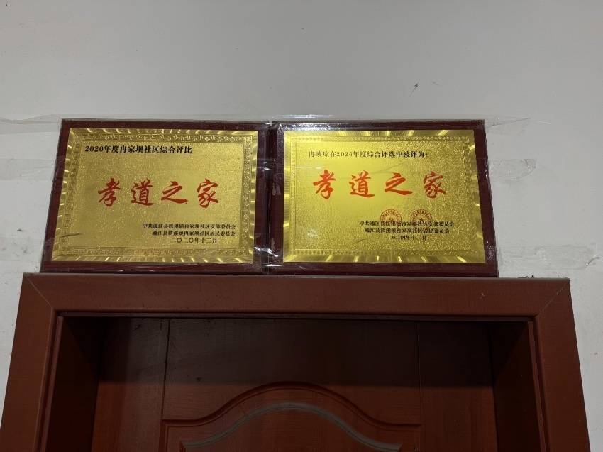 冉映琼获得的孝道之家牌匾。通江县烟草专卖局供图