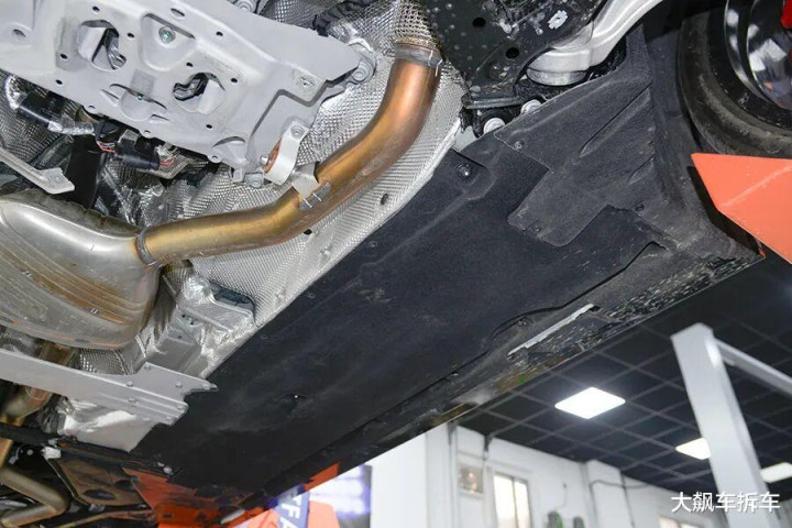 底盘平整度相当不错,几乎铺满了护板,因为德国是个不限速的国家,因此德系车比较重视高速性能,底盘平整是必备条件。