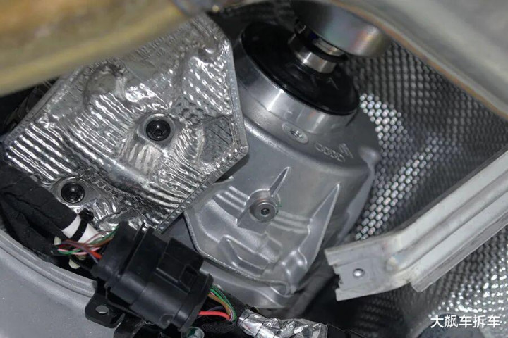 底盘中央部分增加了一道铝合金加强件,老款A4L是没有的,显然A5L的底盘刚性会更强一些。