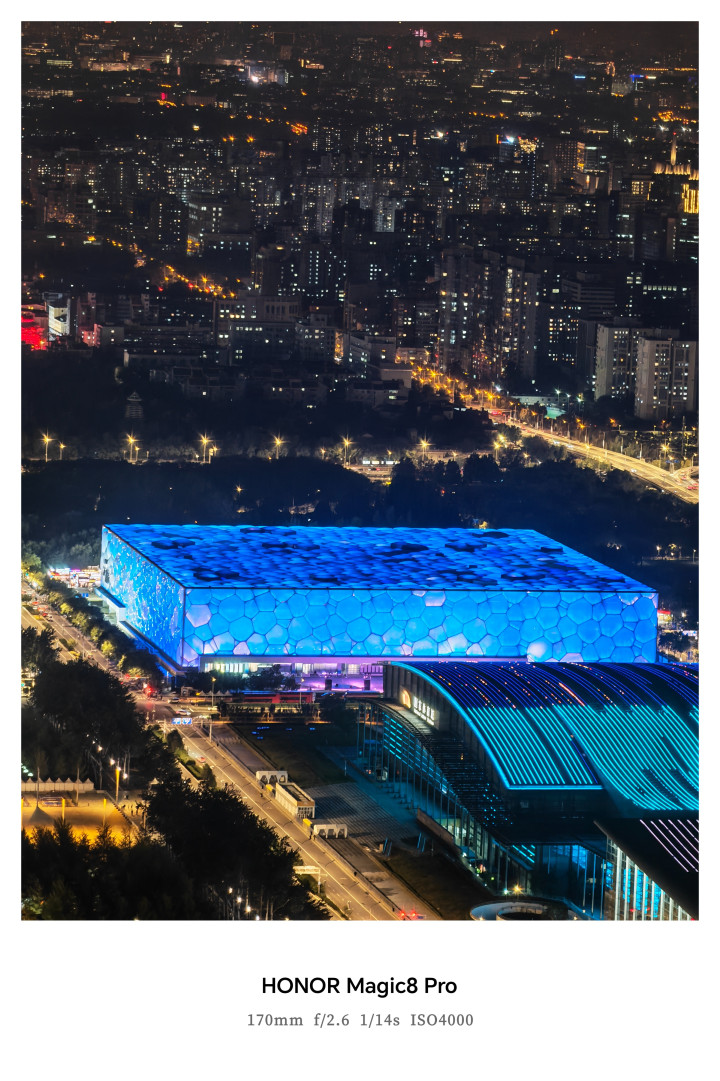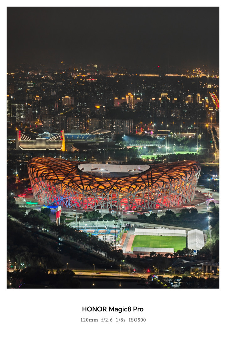 最后重点聊聊影像,这次 Magic8 Pro 的影像提升是真的大!之前荣耀独立后,总有人吐槽它的影像调校不如华为,但这次是真的不一样了。最核心的亮点就是那颗 2 亿像素超夜神长焦,搭配 1/1.4 英寸大底传感器和 CIPA 5.5 级光学防抖,拍照能力直接拉满。我特意去了趟北京奥林匹克塔拍夜景,从照片能看出来,鸟巢、水立方这些标志性建筑的夜景,用长焦拍出来特别清晰稳定,成片质量绝了。