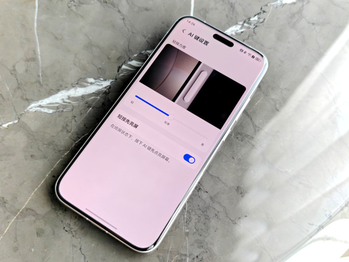 这次 Magic8 系列还新增了一颗 AI 智键,一键就能拍照,上面是触控感应区,触控可以定焦,左右滑动还能调焦距,跟单反的操控逻辑差不多,用起来很方便。